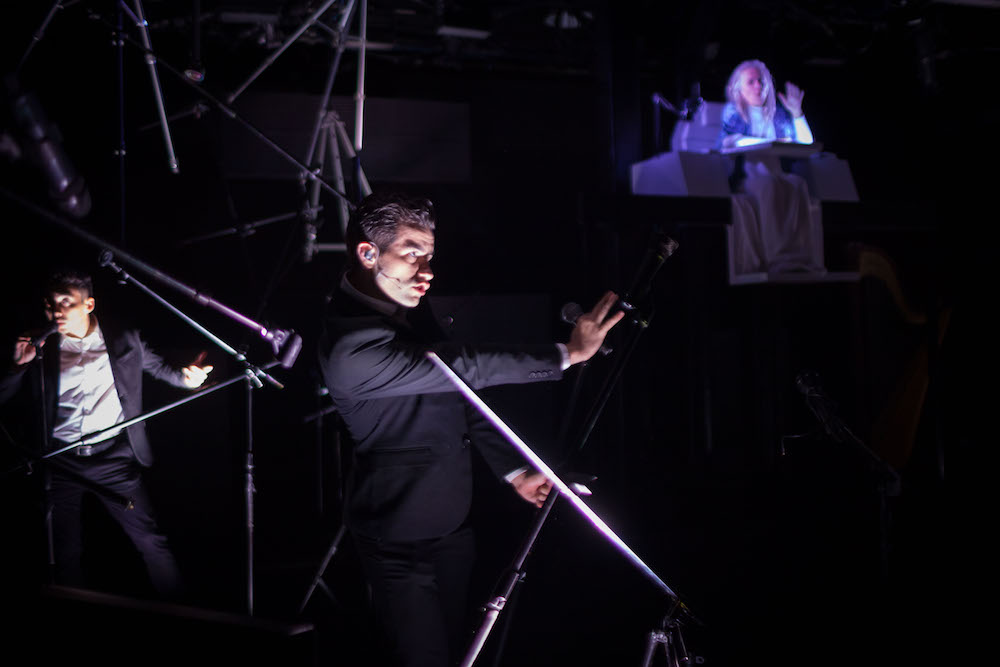 THOMAS PAINE IN VIOLENCE is a high-energy electroacoustic psychedelic opera-sermon created by Paul Pinto [thingNY, Varispeed, Great Comet] set in a radio station in the afterlife of the Founding Father and international activist. Legendary vocalist Joan La Barbara portrays Paine struggling to broadcast a message of economic justice amidst a whirlwind of lightning-quick singing, autotuned shock-jockery, gadgets, voices, instruments, and sonic chaos.